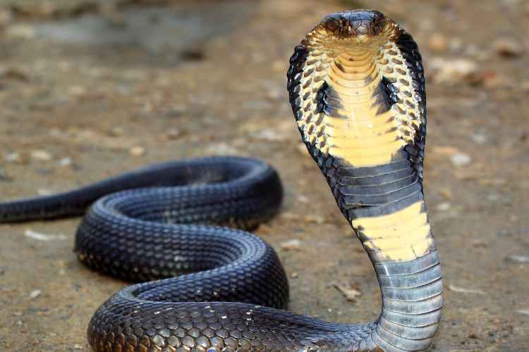 किंग कोबरा एक विषैला सांप है, जो दक्षिण और दक्षिण पूर्व एशिया में पाया जाता है. यह ओफियोफैगस जीनस का एकमात्र सदस्य है. 3.18 से 4 मीटर की औसत लंबाई के साथ, यह दुनिया का सबसे लंबा विषैला सांप है. और इसमें एक शक्तिशाली न्यूरोटॉक्सिक जहर होता है. जो 30 मिनट में शिकार की मौत का कारण बन सकता है.